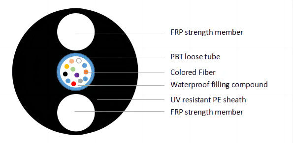 Dua FRP sebagai anggota kekuatan diterapkan di atas selubung dalam, kabel dilengkapi dengan selubung luar PE.